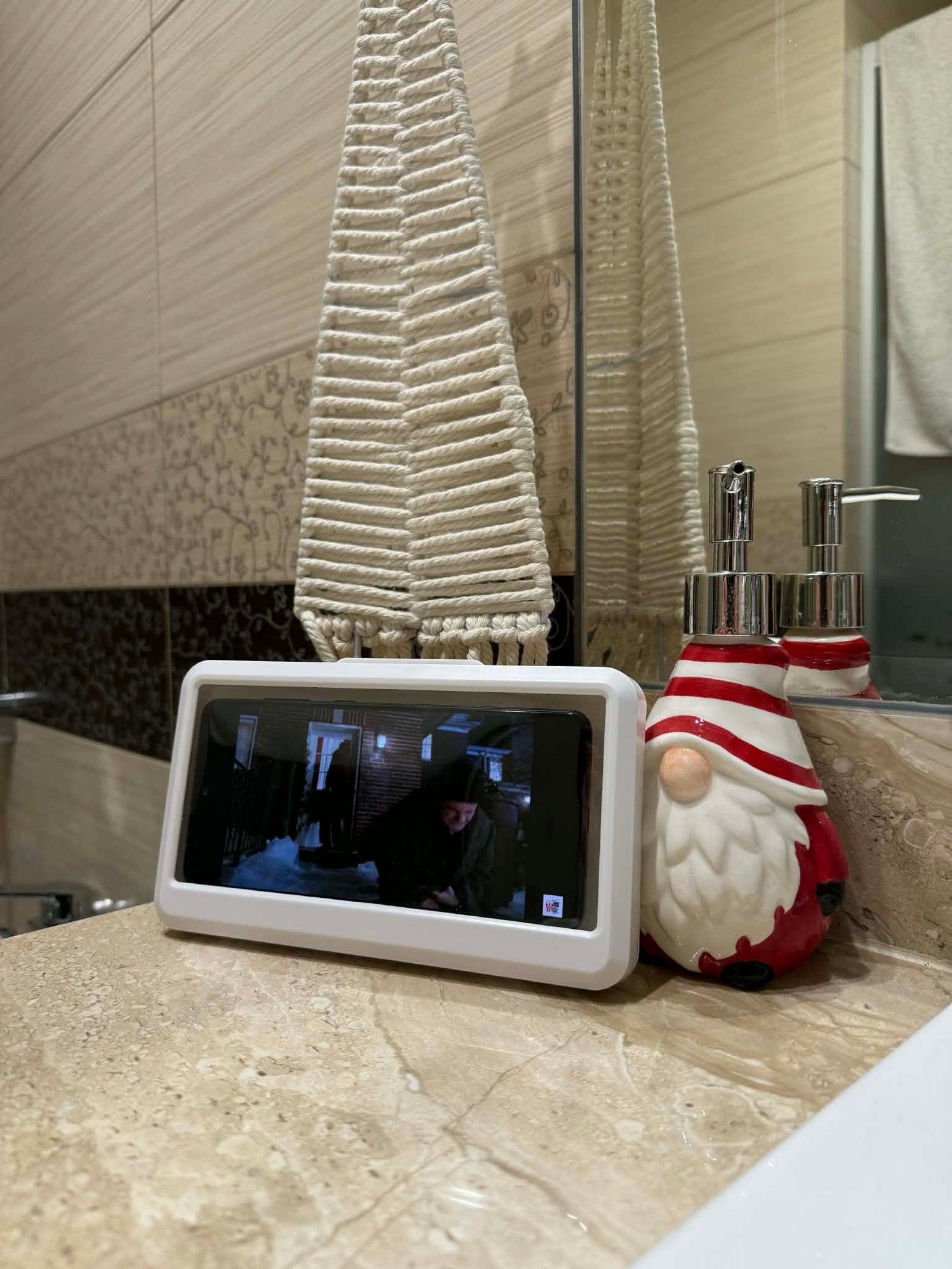 Mocno trzyma się ściany, nic się nie odkleja. W końcu mogę oglądać seriale w wannie bez stresu, że telefon wpadnie do wody.